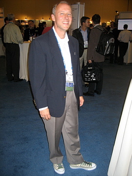 To say it was different from the last tech event I attended (Debconf08) would be an understatement. Out the 600 odd attendees, I don’t think I saw one t-shirted hacker. While I did see a cool pair of high-tops (see below), it was mostly a blazer-clad crowd (moi included).