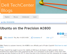 Community feedback in hand, the project Sputnik team took our learnings to the workstation group and convinced them of the opportunity.  The Precision team dug in and a year later the Ubuntu-based Dell M3800 Precision mobile workstation became available (virtually doubling Dell’s developer product line).  Not long after that, the developer portfolio more than doubled again when the Precision team expanded their mobile line up from one to four systems, each of which was available as a developer edition.