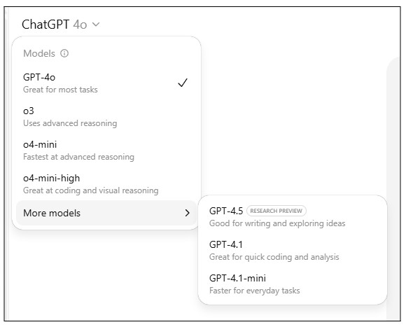But then things took another turn. This morning, while listening to a podcast I was reminded that ChatGPT’s has a bunch of versions, each optimized for specific tasks. I knew there were different options, but like many users, I never got around to finding out what the other flavors were and simply defaulted to ChatGPT 4.0. The podcast highlighted the anticipated release of ChatGPT 5.0, expected to streamline the currently complicated versioning situation rather than add more capabilities.
